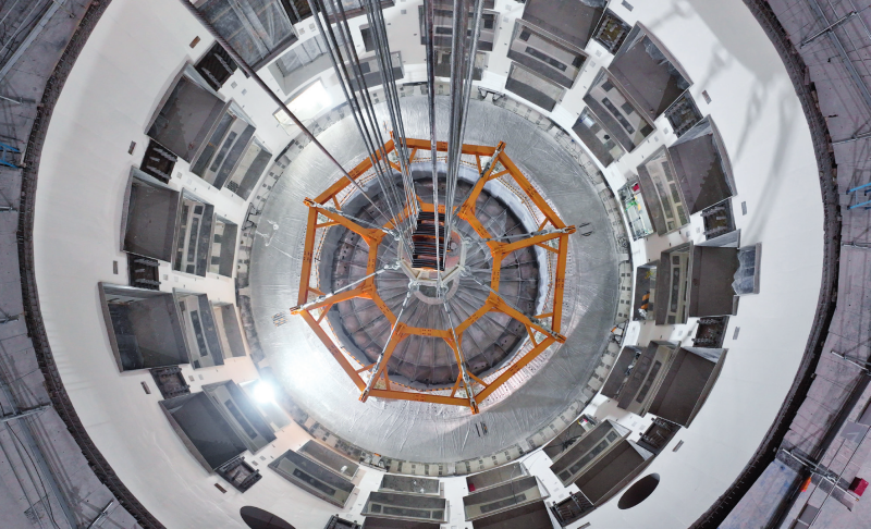 在位于合肥未来大科学城的紧凑型聚变能实验装置(BEST)建设现场拍摄的成功落位安装的杜瓦底座(2025年10月1日)。周牧摄/本刊
