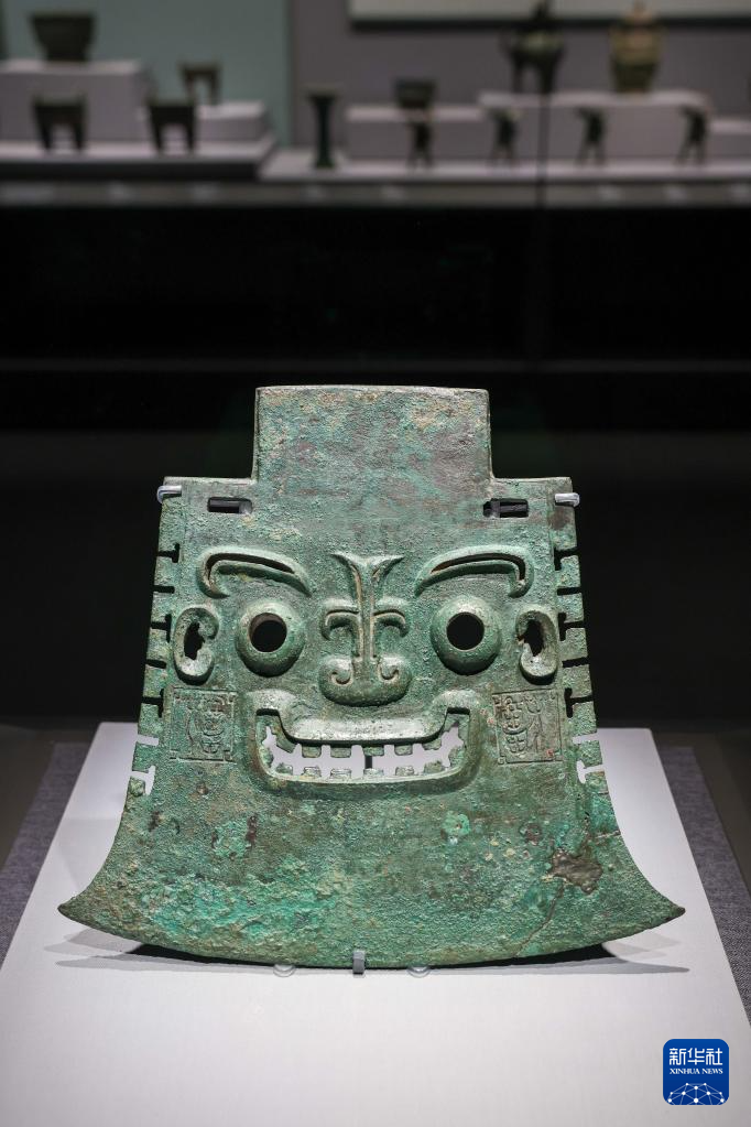 5月16日拍摄的“海岱日新——山东历史文化展”展出的商代青铜器亚醜钺。