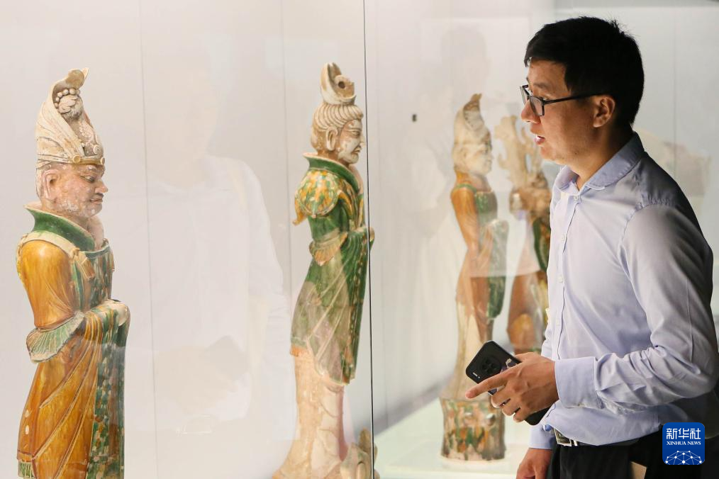 7月14日晚,参观者在上海博物馆的中国古代陶瓷馆观看展品。