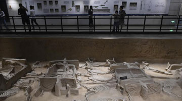7月26日,参加夜游的孩子们在博物馆内了解恐龙。