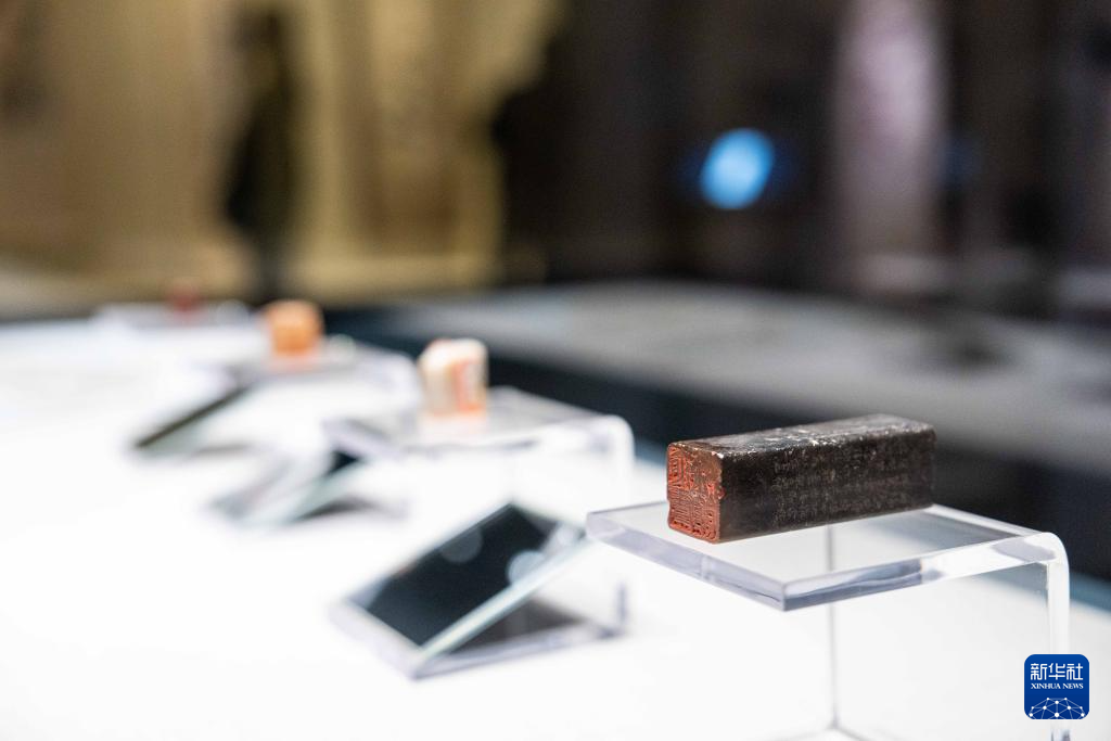 11月5日,在湘潭市博物馆,观众在观看齐白石印章作品。