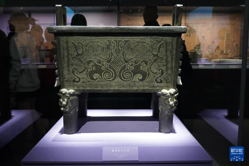 这是展览上陈列的明代夔纹龙大方鼎(11月22日摄)。