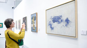 4月22日,参观者在台南大新美术馆观看“‘共南风’大新两岸双城青年艺术交流展”。新华社记者 齐菲 摄