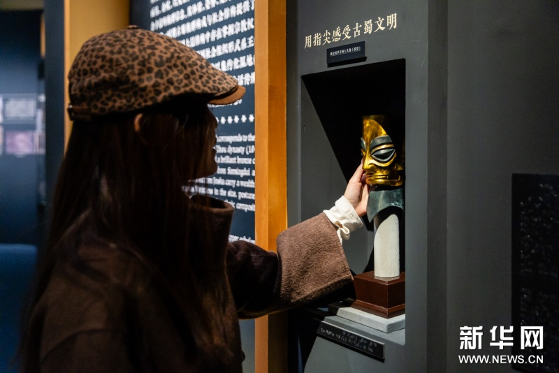 展品包括金辉璀璨的太阳神鸟金饰,双目如棱的戴金面罩青铜人头像,玄奇诡谲的戴冠纵目面具,以及青铜立人像、龙柱形青铜器、肩扛象牙人形纹玉璋等,这些先民的杰作,共同勾勒出一个瑰丽精彩的古蜀社会,也彰显了中华文明和而不同的宏大气象。