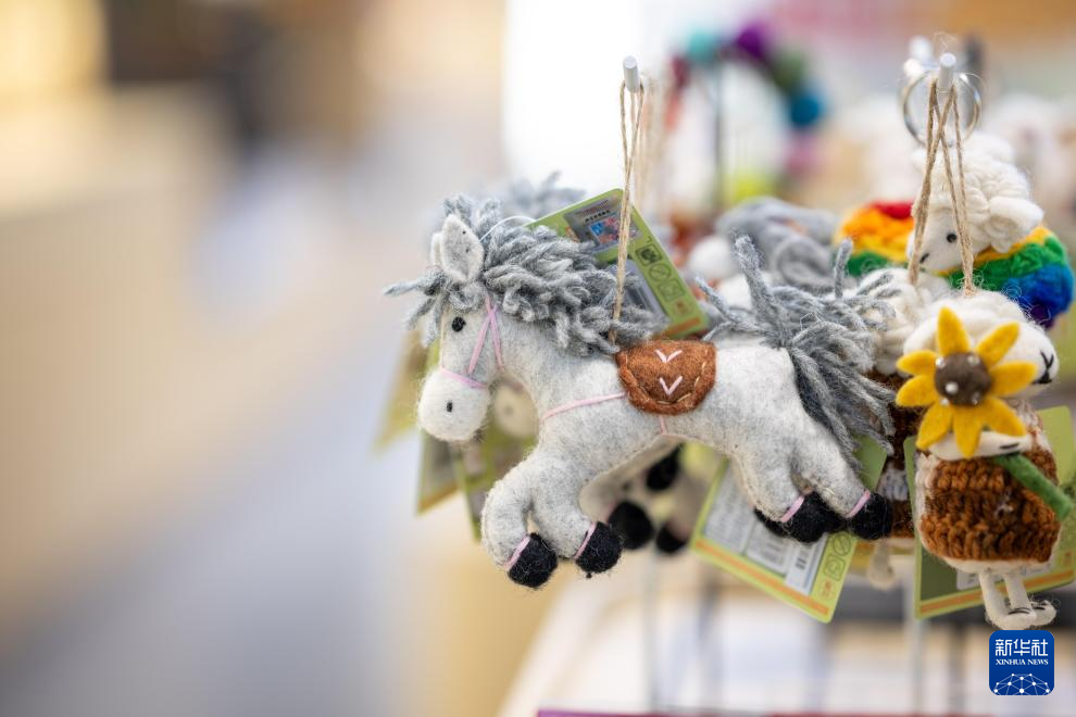 这是在内蒙古博物院的一家文创店内拍摄的马造型挂件(2月7日摄)。