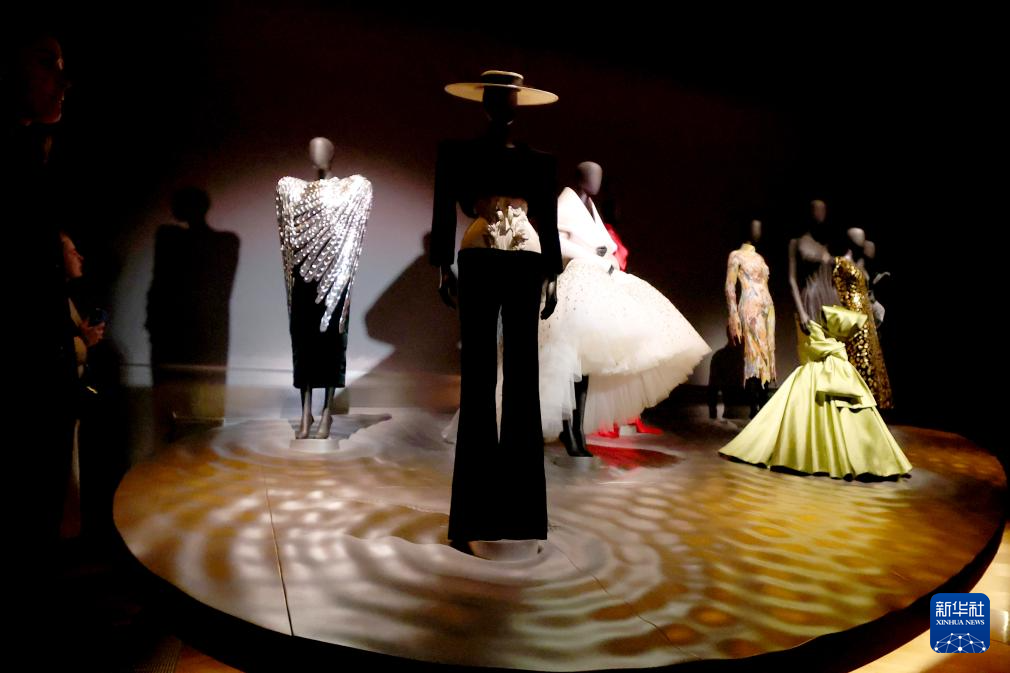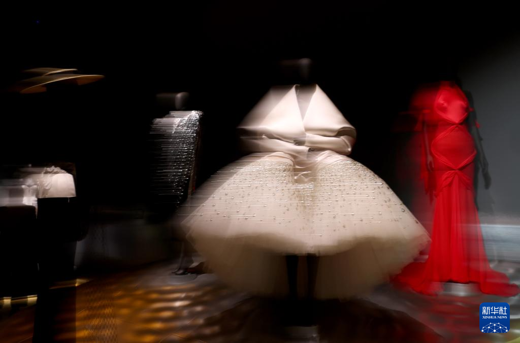 这是3月30日在英国伦敦维多利亚与阿尔伯特博物馆拍摄的“夏帕瑞丽:当时尚成为艺术”展览现场。