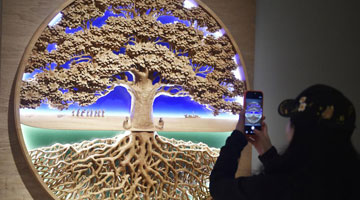 4月1日,观众在意大利罗马国家博物馆戴克里先浴场观看特别展览“邬建安:变形记”的展品。