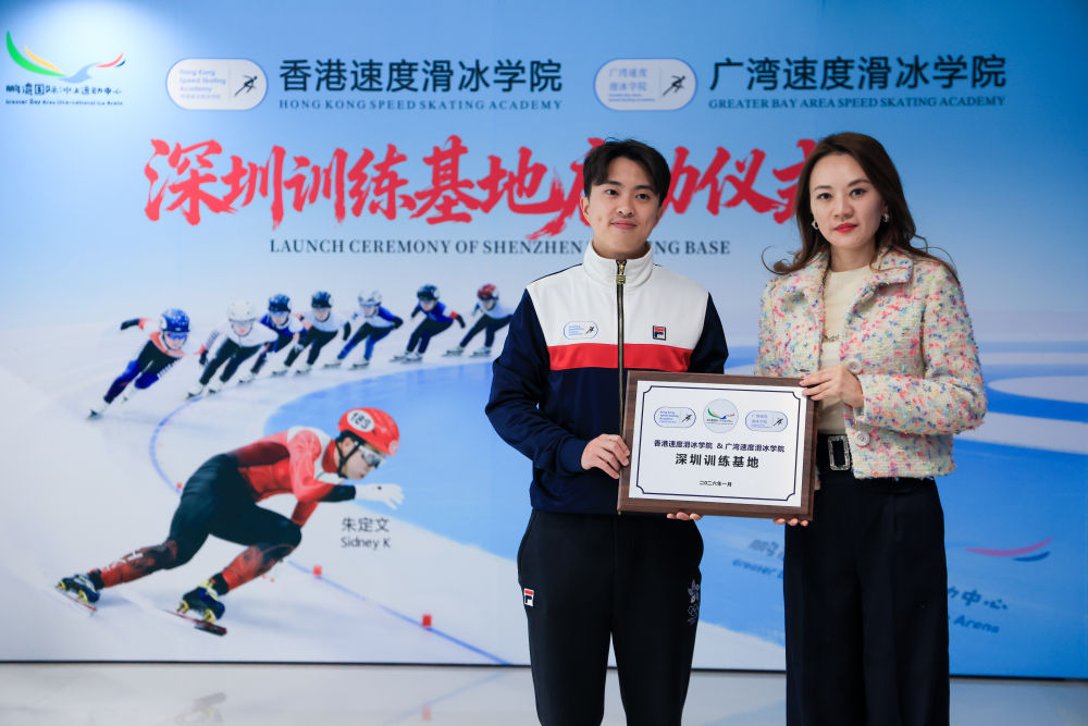 香港速度滑冰学院9日与深圳鹏湾国际冰上运动中心正式达成合作,成立了深圳短道速滑训练基地,致力于在大湾区推广短道速滑运动。