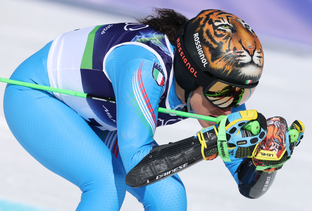 新华社意大利科尔蒂纳丹佩佐2月15日电(记者周欣、王楚捷)15日,位于科尔蒂纳丹佩佐的托法纳高山滑雪中心陷入欢乐的海洋,35岁的意大利老将费代丽卡·布里尼奥内继摘取女子超级大回转冠军后,戴着她的专属老虎头盔再显神威,在女子大回转比赛中犹如“下山猛虎”般为东道主再添一金,个人加冕本届冬奥会的“双冠王”。