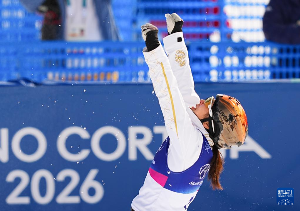 2月18日,中国选手徐梦桃庆祝夺冠。