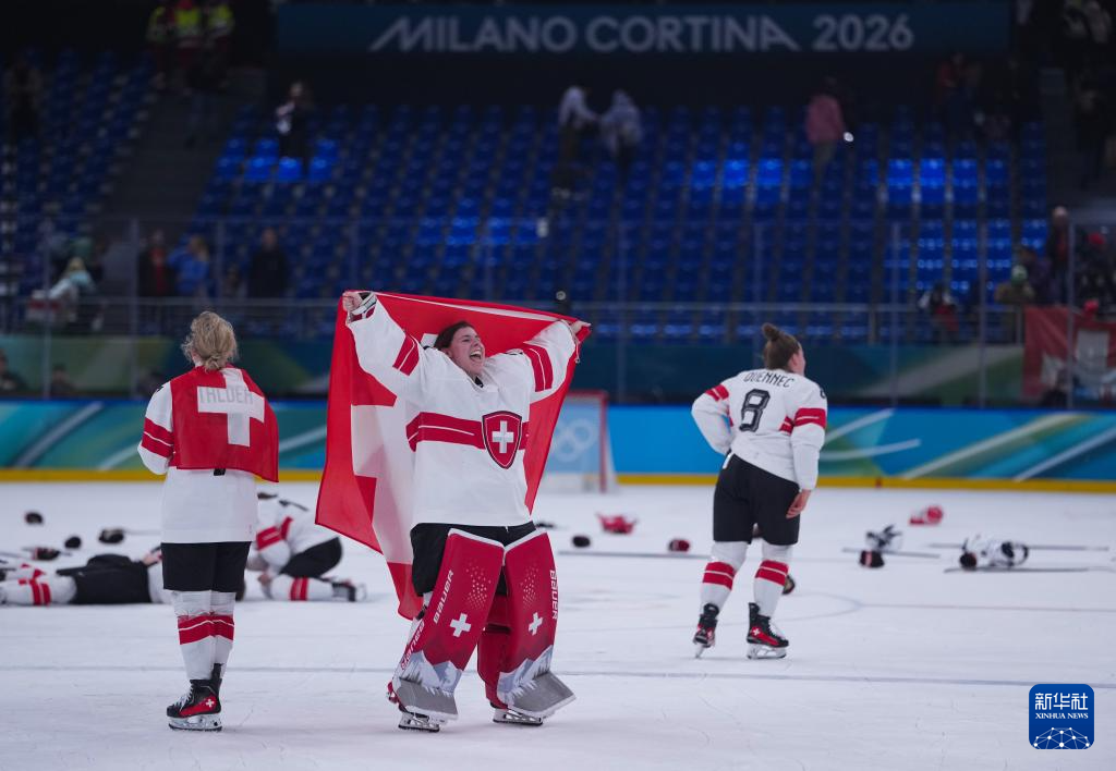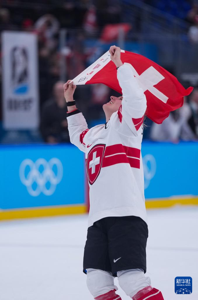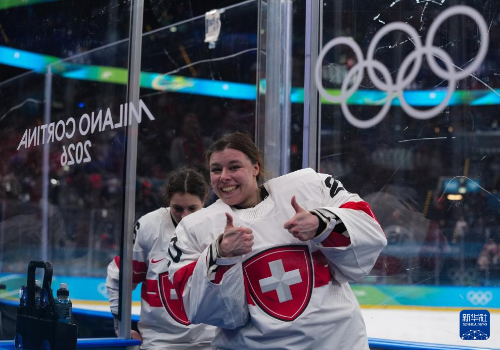 2月19日,瑞士队球员阿林娜·米勒在赛后庆祝。