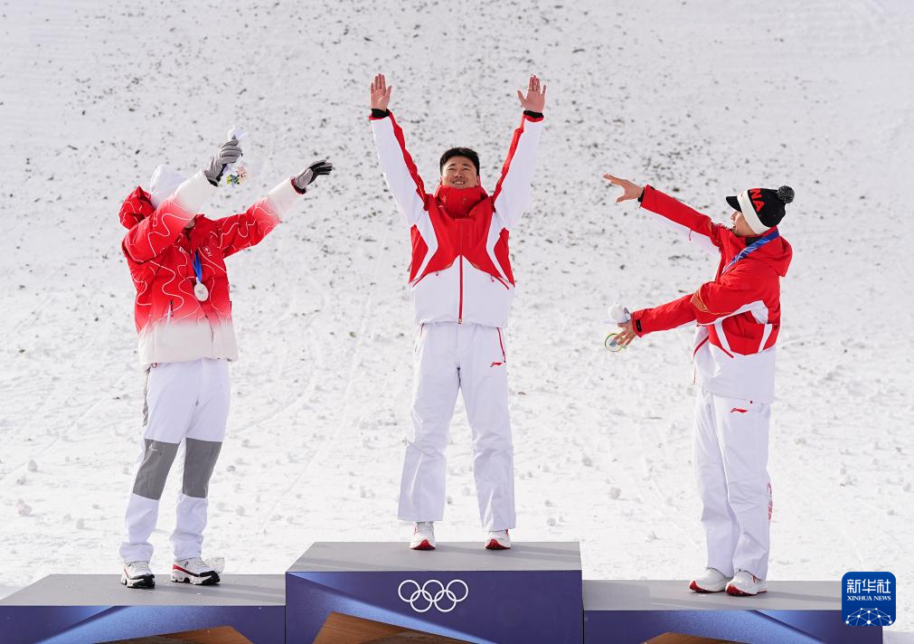 当地时间2月20日,在意大利利维尼奥举行的米兰-科尔蒂纳冬奥会自由式滑雪男子空中技巧决赛中,中国选手王心迪和李天马分获冠军和季军。