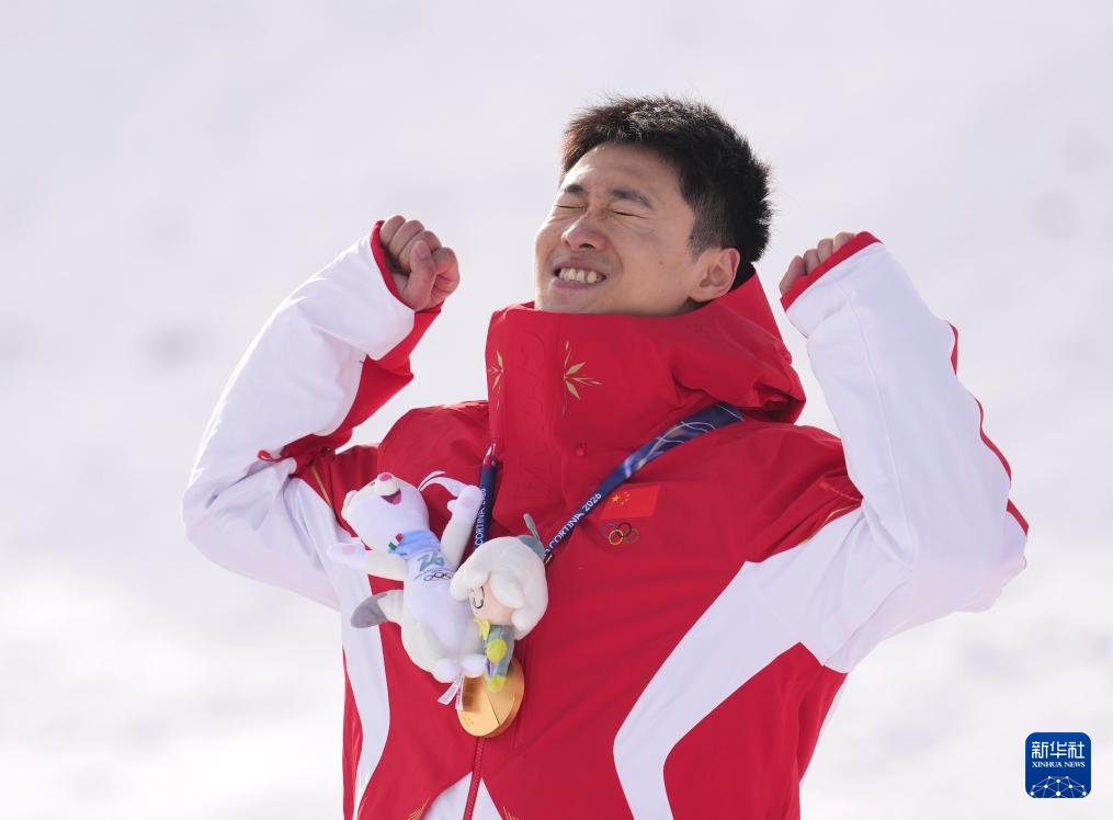 2月20日,冠军中国选手王心迪在颁奖仪式上。