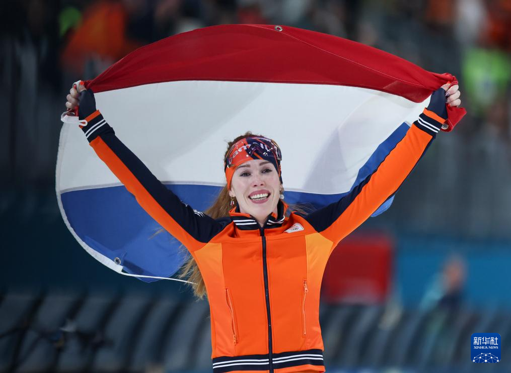 2月20日,荷兰选手赖普马-德容在比赛后庆祝。她夺得冠军。