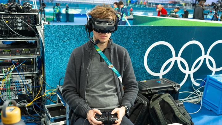 "新华社记者采访速滑赛场的无人机飞手,揭秘冬奥会室内冰场上如何呈现惊险刺激的比赛“第一视角”画面。"