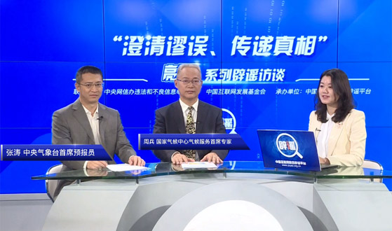 中央網(wǎng)信辦違法和不良信息舉報(bào)中心、中國(guó)互聯(lián)網(wǎng)發(fā)展基金會(huì)、中國(guó)互聯(lián)網(wǎng)聯(lián)合辟謠平臺(tái)正式推出“澄清謬誤、傳遞真相”系列辟謠訪談。第一期,我們邀請(qǐng)到中央氣象臺(tái)首席預(yù)報(bào)員張濤、國(guó)家氣候中心氣候服務(wù)首席專家周兵,為您解讀天氣、氣候等方面的話題。