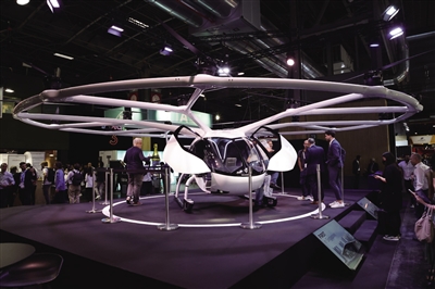 图为德国沃洛科普特公司2022年6月在法国巴黎举行的“科技万岁”科技创新展览会上展示的纯电动直升机。 新华社发(里特·埃斯摄)