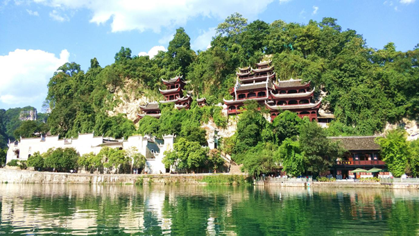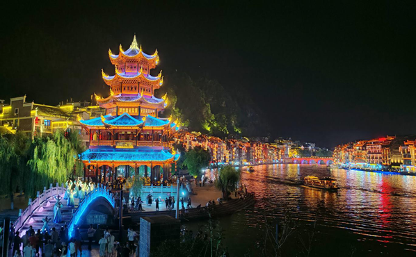 㵲阳河穿城而过,天然勾勒出“S”形太极图,山、水、城浑然一体,形成镇远县“九山抱一水,一水分两城”的独特格局。青龙洞古建筑群被誉为中国“三大贴崖古建筑群”之一。祝圣桥历经六百余载风雨,依然庄重挺立。登石屏山远眺,古城风貌尽收眼底;泛舟㵲阳河,赏万家灯火、览人间星河。乔雨先生笔下“也曾㵲阳泛轻舟,青山妩媚水温柔”的诗句,生动描绘了㵲阳河国家级风景名胜区的奇绝景致。