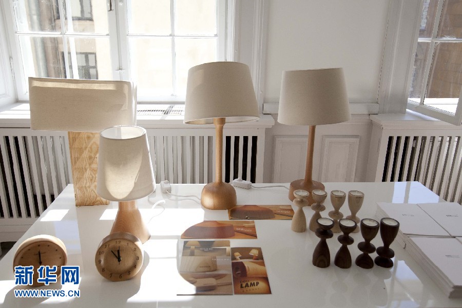 圖為10日所拍攝的“融?工藝設計生活”設計展上用竹條編織的臺燈。