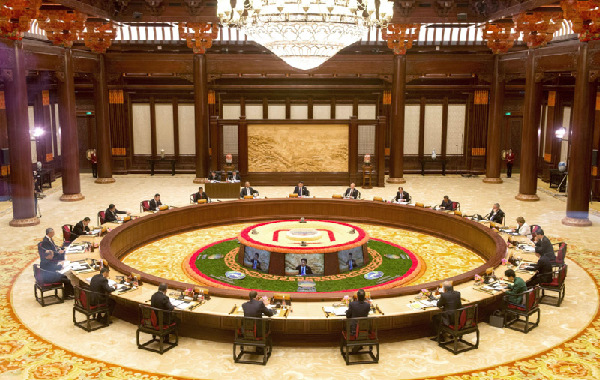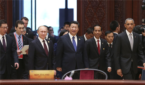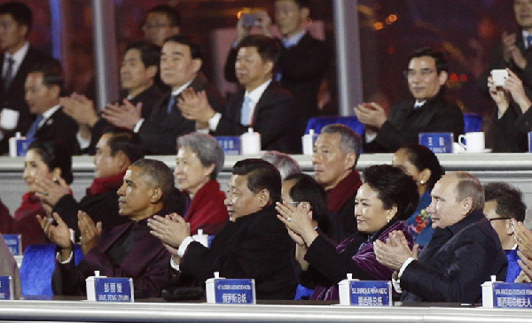 上午9時30分許,亞太經(jīng)合組織領(lǐng)導人非正式會議開始在雁棲湖舉行。