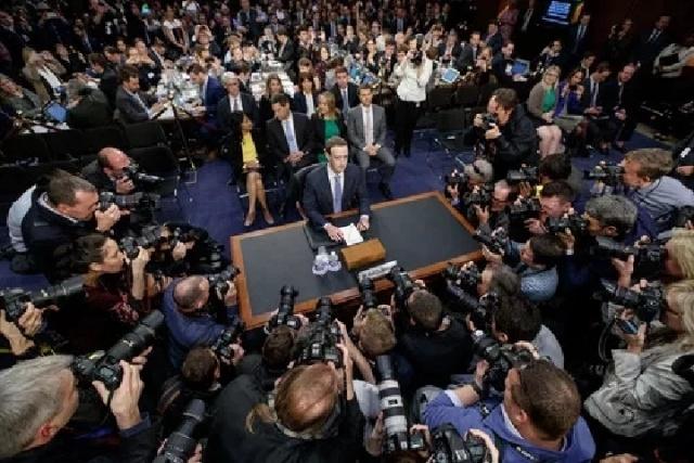 美國(guó)社交媒體平臺(tái)臉書公司首席執(zhí)行官馬克·扎克伯格2018年4月10日出席聽證會(huì),就用戶數(shù)據(jù)泄露事件接受國(guó)會(huì)質(zhì)詢。新華社發(fā)(沈霆 攝)