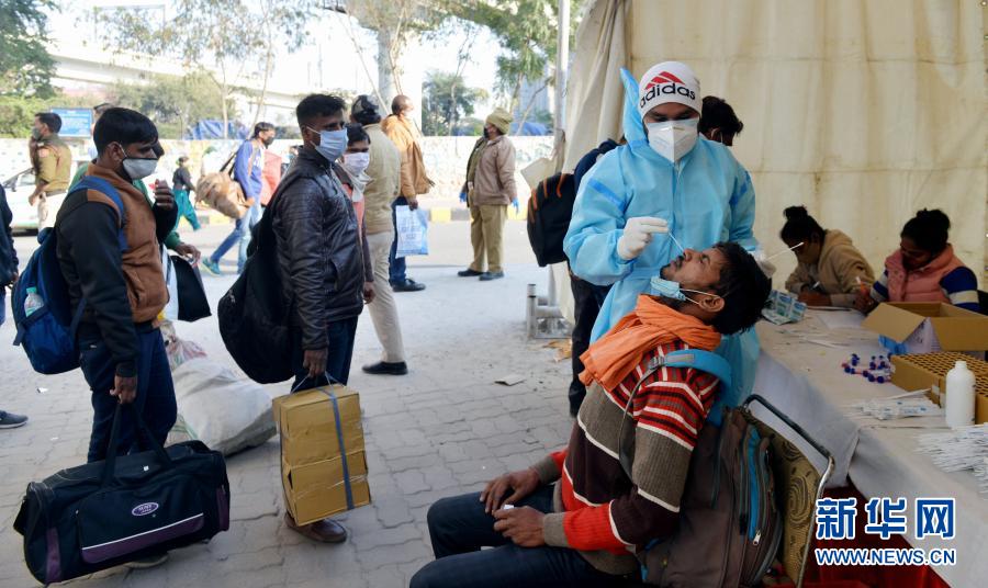 12月19日,乘客在印度德里一處巴士終點站接受新冠病毒檢測取樣。新華社發(fā)(帕塔·薩卡爾攝)