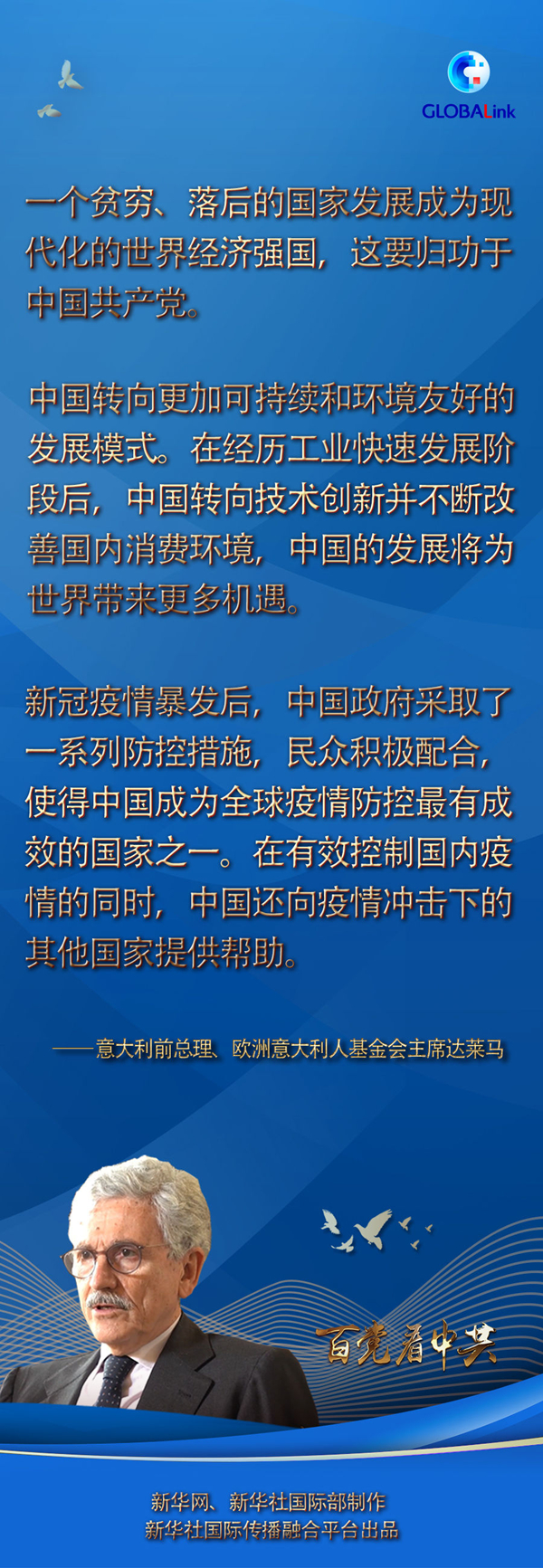 達萊馬先后擔任過意大利總理和外長等職,從20世紀70年代起多次訪問中國,見證了幾十年來中國的發(fā)展。