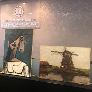 希臘警方28日在距離首都雅典大約50公里處的一座倉庫中發(fā)現(xiàn)國(guó)立美術(shù)館2012年失竊的一幅畢加索作品《女人頭像》。在同一行動(dòng)中,警方還發(fā)現(xiàn)國(guó)立美術(shù)館另一失竊作品,即荷蘭畫家皮特·蒙德里安1905年創(chuàng)作的《磨坊》。蒙德里安畫作發(fā)現(xiàn)時(shí)已有損壞。警方在行動(dòng)中逮捕了一名現(xiàn)年49歲的男子。新華社發(fā)